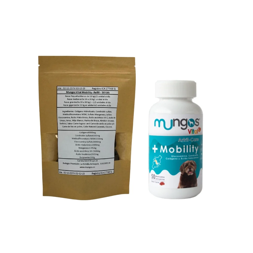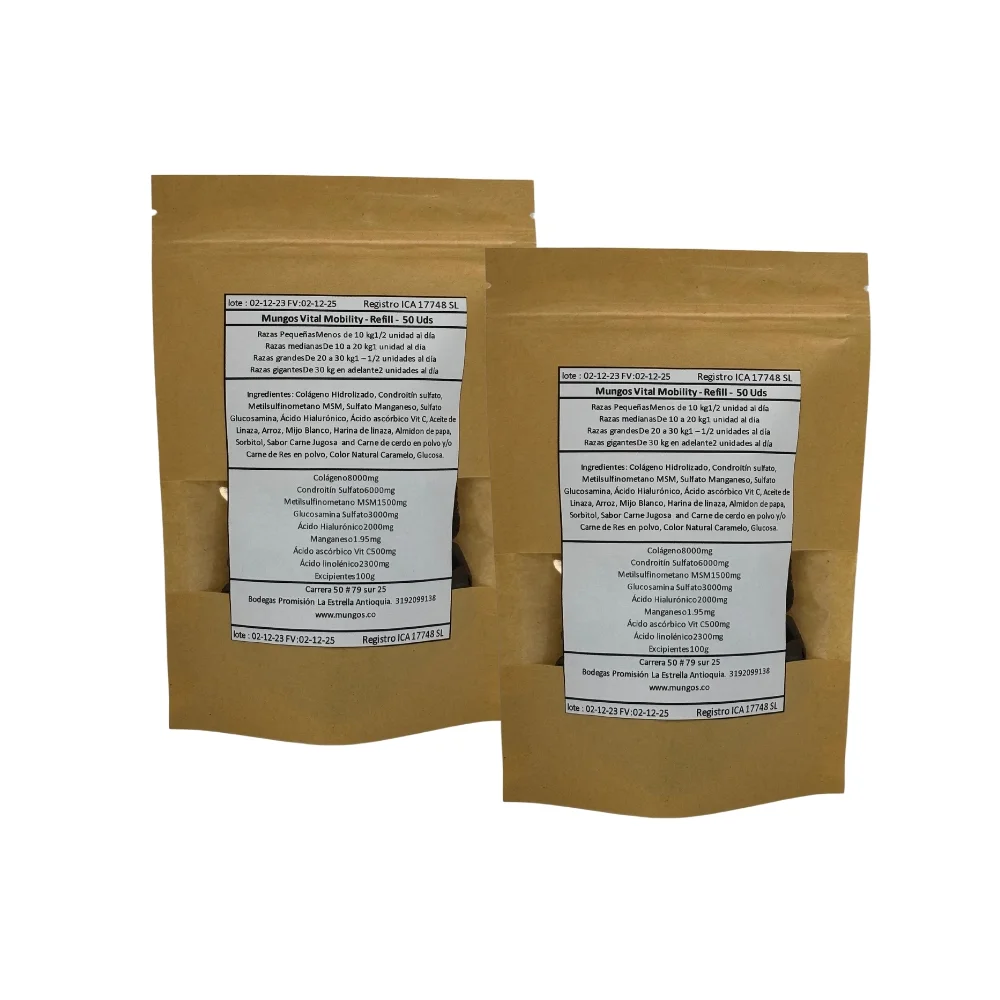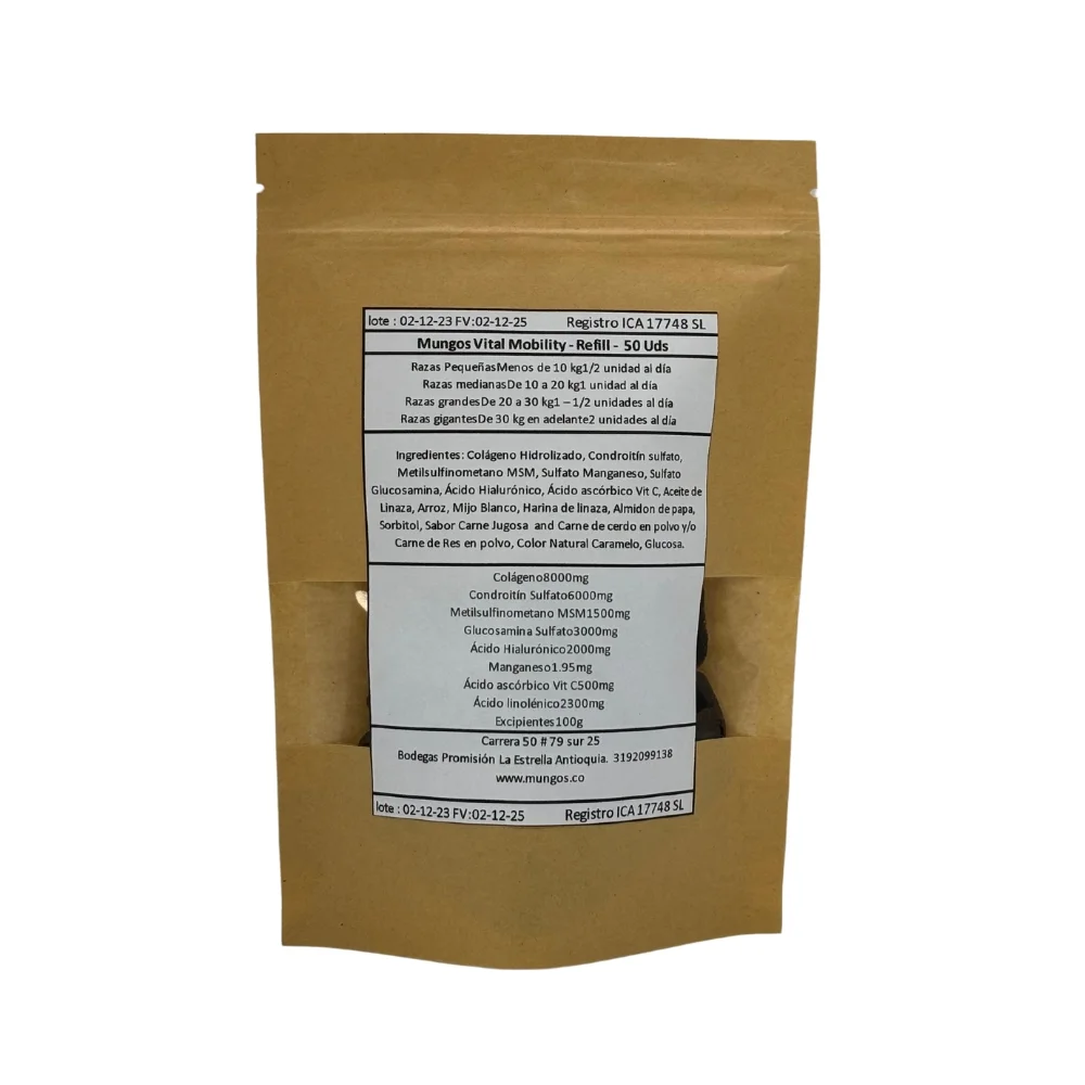 A mis perris les encantan sus gomas, es muy fácil de darles y les ayuda con el tema de sus articulaciones, compré un tarro y un sobre para hacer refil, pero el sobre llegó aplastado y las gomas unas pegadas a las otras.